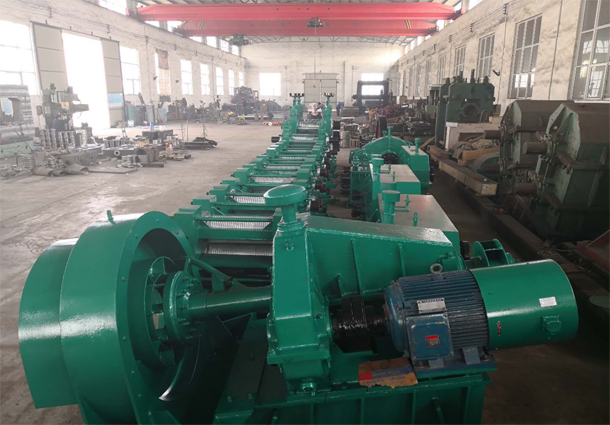 螺紋鋼軋機(jī)生產(chǎn)線是將廢舊鋼鐵重回爐融化,制成坯料,再次軋制成螺紋鋼的生產(chǎn)設(shè)備。主要設(shè)備包括主電機(jī),飛輪,齒輪箱,減速機(jī),三輥開坯機(jī),切頭剪,連軋機(jī)組,定尺剪,輥道,冷床等設(shè)備